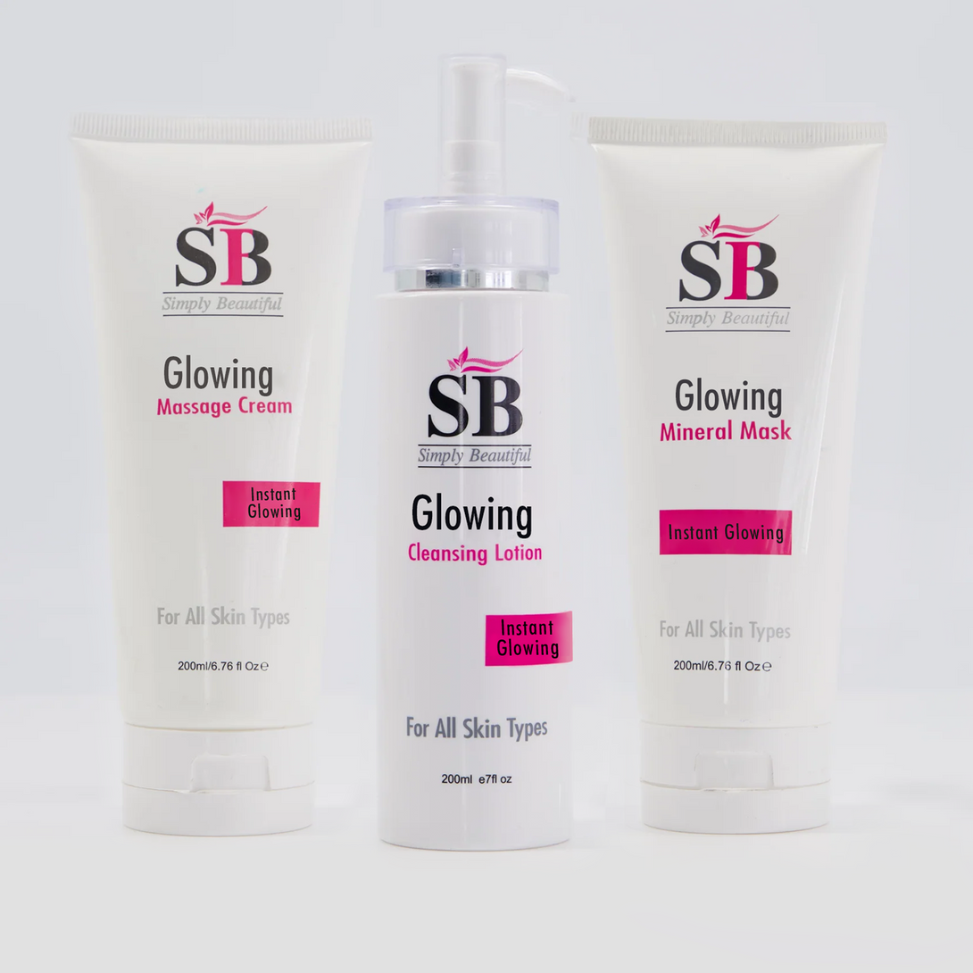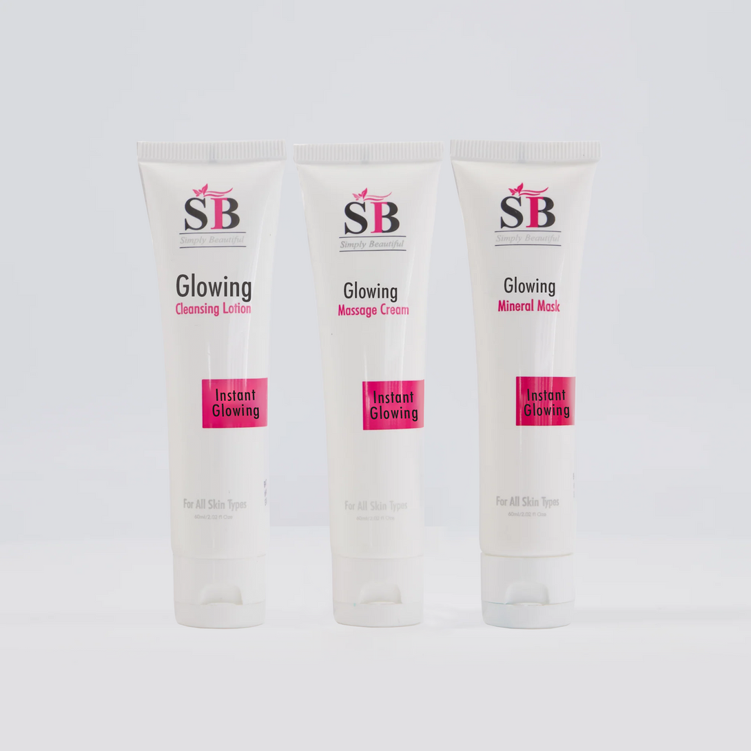 Transform your skincare routine with the Glowing Care Set by SB (Simply Beautiful). This 3-step bundle works together to cleanse, nourish, and glowing your skin, revealing a radiant and refreshed complexion.