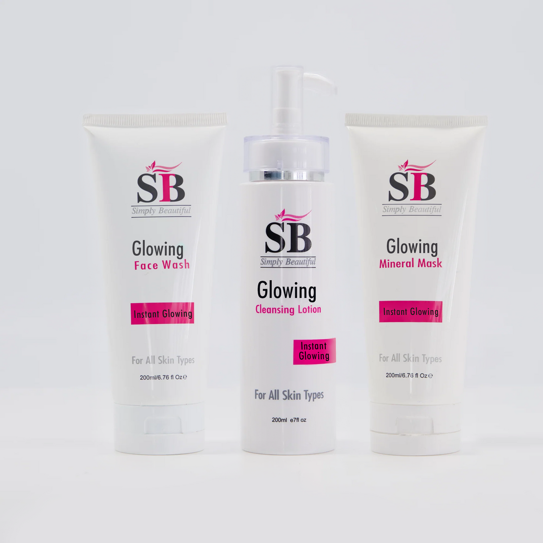 The SB Facial Cleansing Lotion is a multi-action moisturizer that removes makeup, deeply cleanses pores, and restores moisture balance while targeting sun damage and hyperpigmentation for a glowing complexion. The SB Glowing Mineral Mask detoxifies the skin by providing essential nutrients and moisture while drawing out impurities and delivering antioxidants to lighten the signs of sun damage. The SB Face Wash effectively removes dirt, oil, and impurities accumulated throughout the day, promoting hydration and balancing pH levels to prevent dryness and aging. Together, these products form a comprehensive skincare routine that cleanses, hydrates and brightens for clean, healthy, and radiant skin.