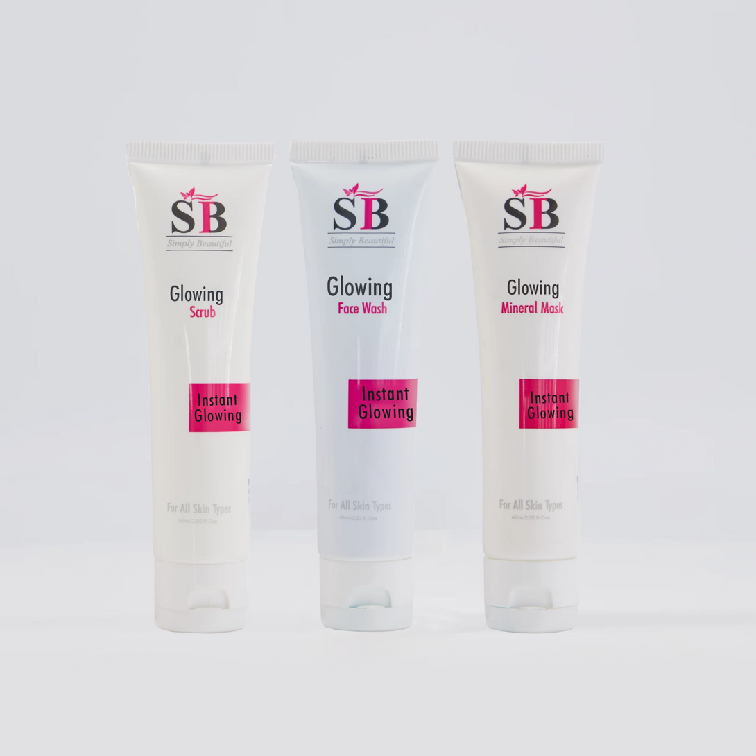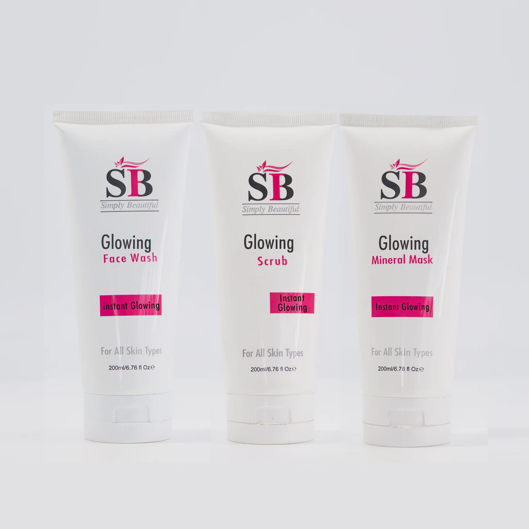 Refresh your skin with the Glowing Cleanse & Glow Set by SB (Simply Beautiful). This powerful 3-step skincare routine works to deeply cleanse, exfoliate, and detoxify, revealing a radiant, smooth, and even complexion.